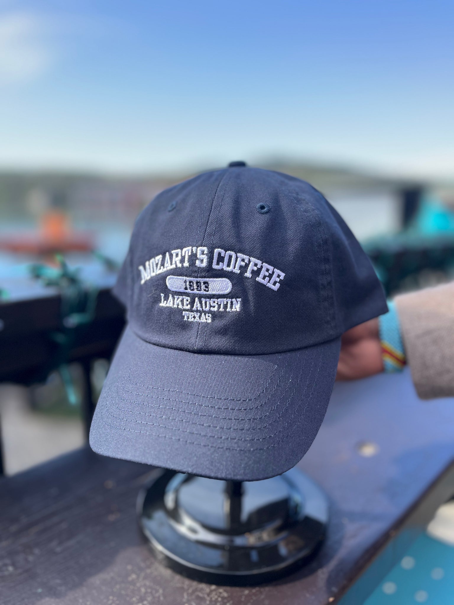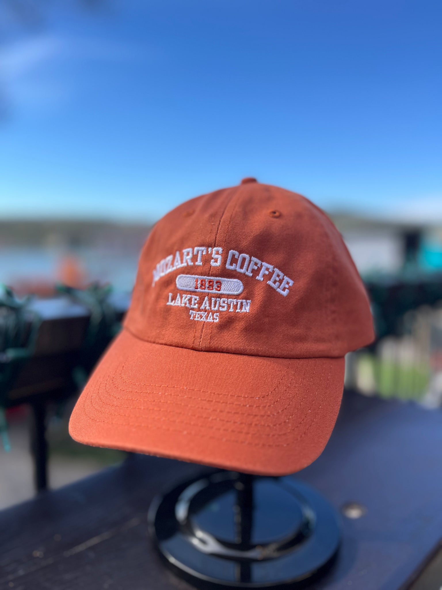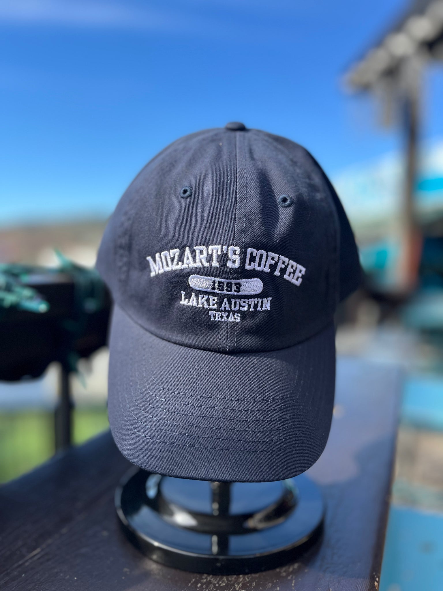 Our unisex Baseball Caps are designed to optimize comfort and style in the Texas sun. Embroidered in white with our classic Mozart's logo, these hats have a light, unstructured build and faded look that makes us fondly reflect on the 90s fashion that was so popular the decade we were founded ('93!).